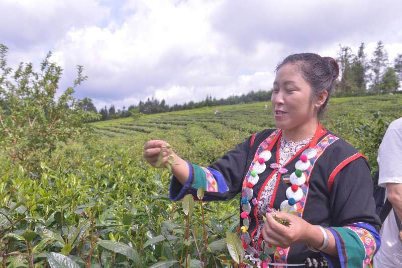 長田壩村支部書記沙路正熱情地向我們介紹茶園種植的成果